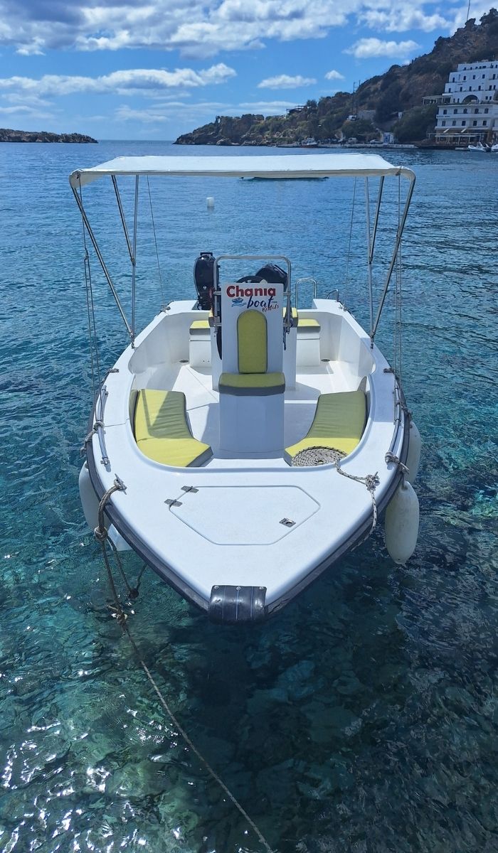 Looking for a relaxing sea adventure? Ostria boat Chania is ready for your next half-day or full-day trip. No license needed, with optional skipper service available. Depart from Chania Old Harbour and create memories on the Cretan sea.